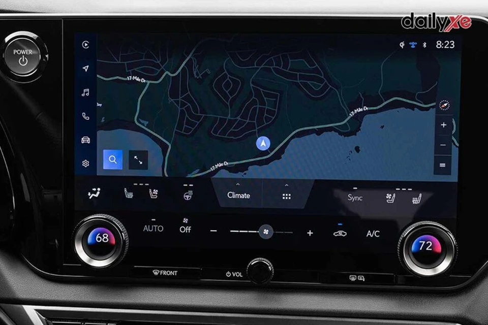 Khu vực taplo xe nổi bật với màn hình giải trí trung tâm đặt nổi kích thước 14 inch, hỗ trợ kết nối Apple Carplay/Android Auto. Xe còn được trang bị trợ lý ảo thông minh cho phép người lái ra lệnh bằng giọng nói vô cùng tiện lợi.